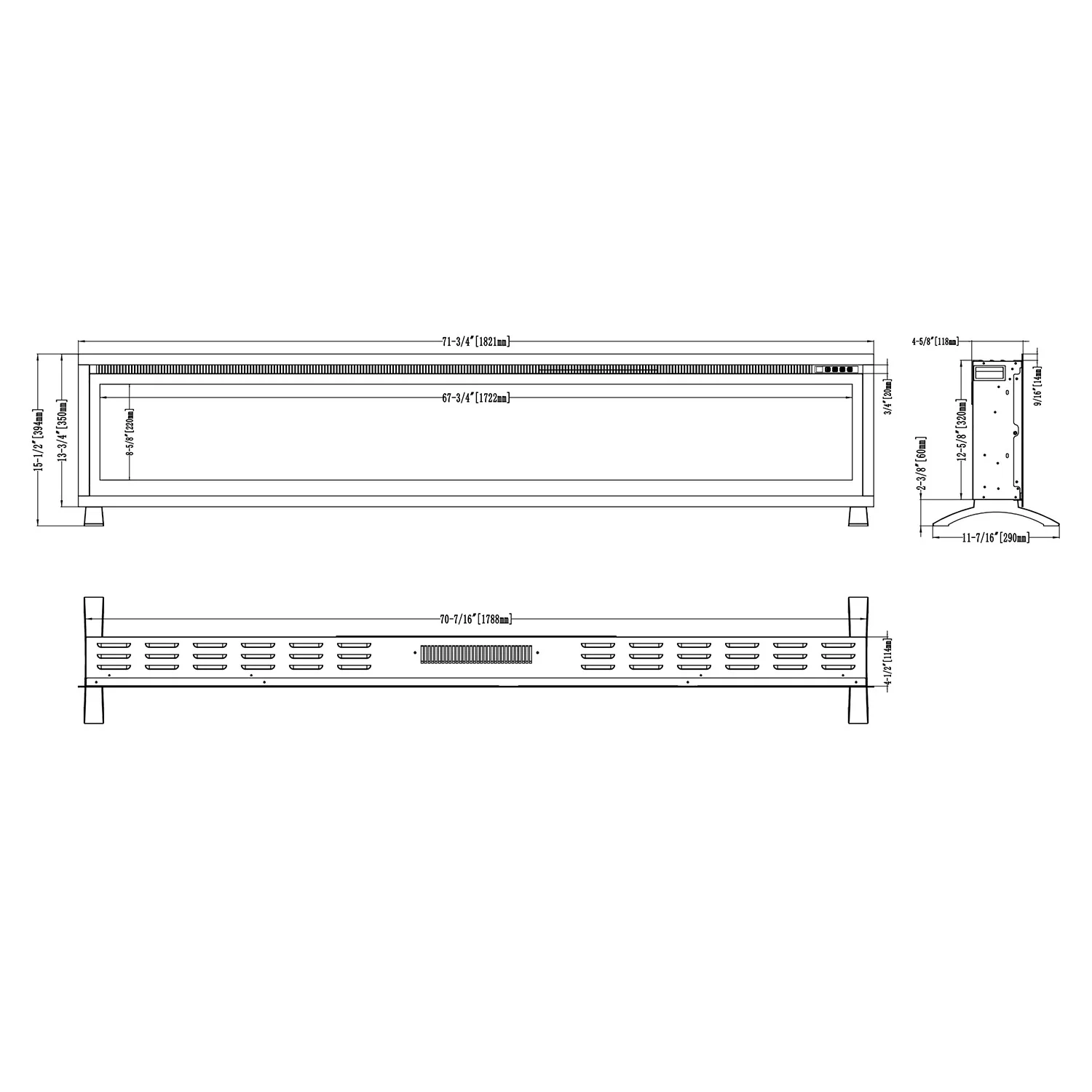 1-sidet indbygningselpejs